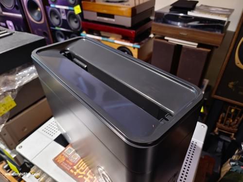 使用非常簡易,提供三種清洗模式選擇 (只使用清洗模式,或是只啟用吹乾模式,又或者是清洗及吹乾模式)。只需選擇清洗模式及按開始鍵後,便會自動進行清洗。不論是清洗還是吹乾,兩者都提供兩種時間選擇。清洗可以選擇2分鐘或5分鐘,吹乾有5分鐘與10分鐘兩種選擇。也就是說最短只需要7分鐘,就可以將一片黑膠清洗乾淨並吹乾完畢。而在進行清洗工作時,運轉噪音約在60至70dB之間。除了以40kHz的超音波清洗之外,HumminGuru內部還設有雙風扇負責吹片。在水槽與風扇的出口處也都有設計濾棉,大幅延長器材的使用壽命。